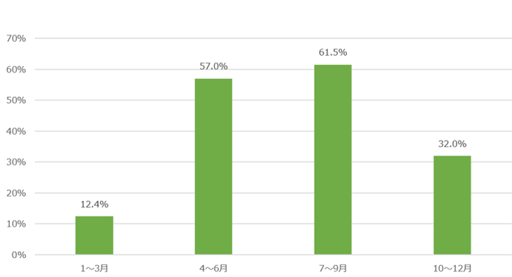 体育会学生に繁忙期について質問をしたところ、61.5%の学生が「7~9月」と回答した。