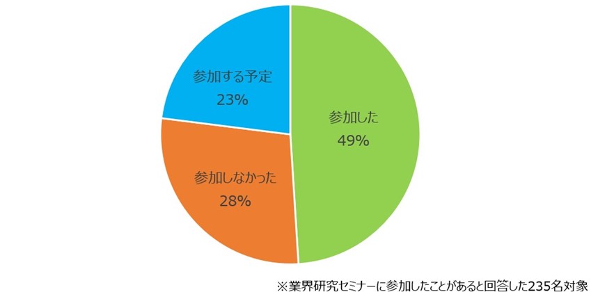 業界研究セミナーで知ったインターンシップに参加したことがある学生は、約49%だった。