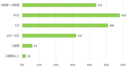 緊急事態宣言中の調査アンケートでは【1日】を希望する学生が最も多かったが、今回の調査で最も多かった希望時間は【半日】となった。