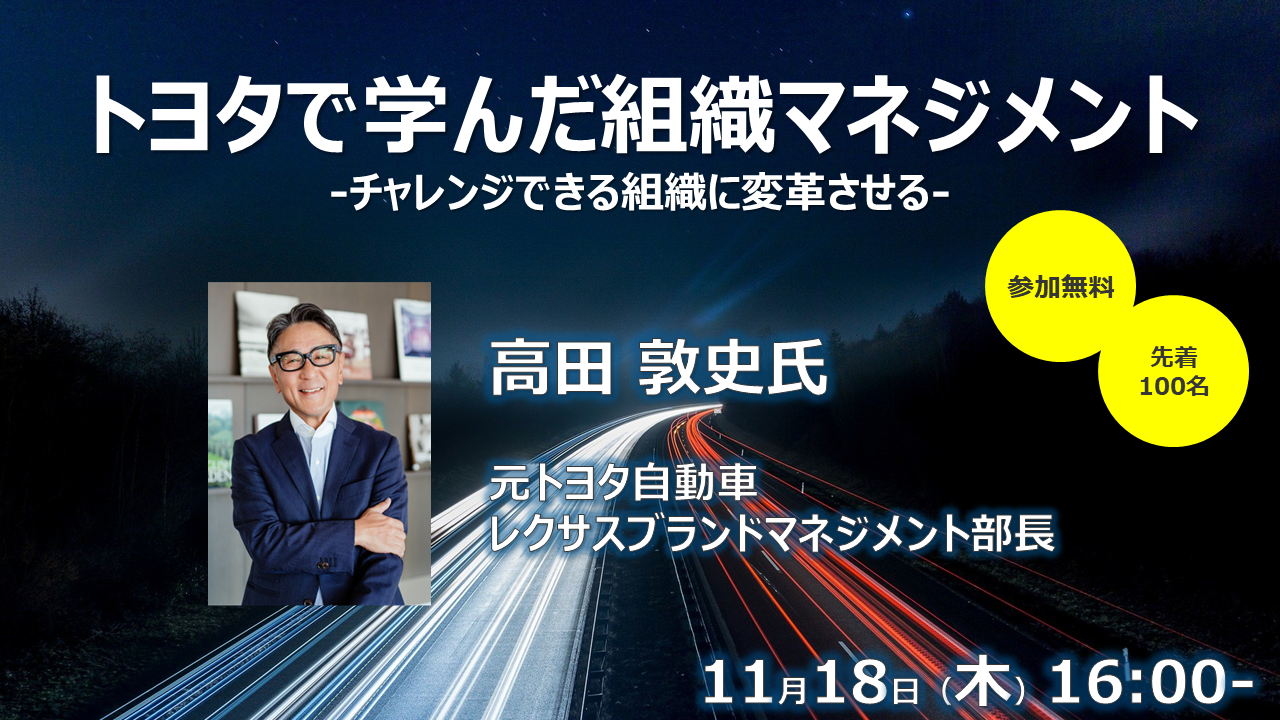 元トヨタのブランドマネージャーが登壇!「トヨタで学んだ組織マネジメント」【オンラインセミナー開催】