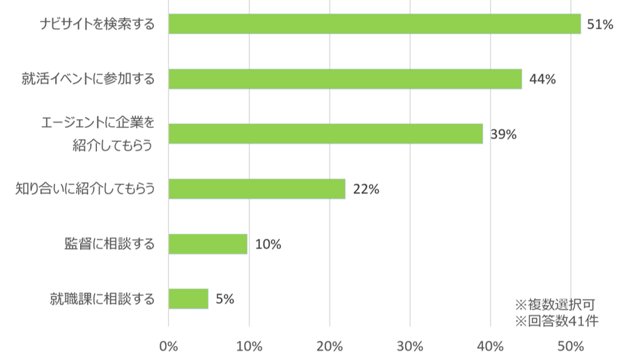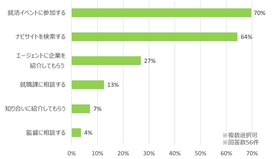 追加でエントリーする企業の探し方として、『北海道・東北』『関東』は、【ナビサイトを検索する】がトップとなり、その他のエリアは、【就活イベントに参加する】がトップとなった。