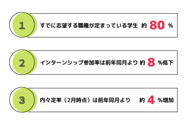 3年生の12月時点で内々定を獲得している割合は、昨年同月より約4%増加し、約13%だった。