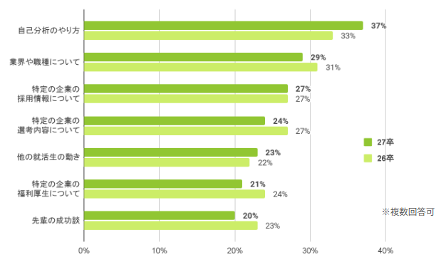 いま知りたい情報で【自己分析(37%)】がトップとなった点からも、